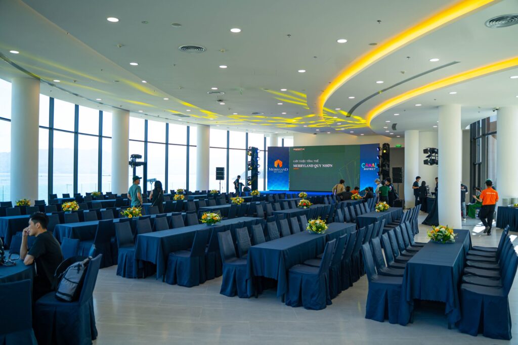 𝟭. Địa điểm tổ chức: Ưu tiên vị trí gần trung tâm, cơ sở vật chất hiện đại, âm thanh ánh sáng hiện đại, công suất sảnh phù hợp với số lượng khách mời, dịch vụ chỉn chu và chuyên nghiệp.